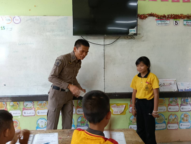 วันที่17 ธันวาคม 2567 รหัส 21805 เข้าทำการสอนตามโครงการการศึกษาเพื่อต่อต้านการใช้ ยาเสพติดในเด็กนัก