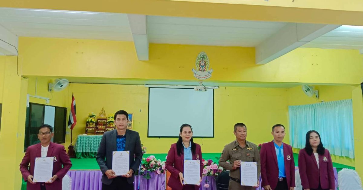 พ.ต.อ.สุรวิทย์ โยนจอหอ ผกก.สภ.ตาลสุม ร่วมพิธีลงนามในบันทึกข้อตกลงความร่วมมือ ( MOU ) สถานศึกษาสีขาว ปลอดยาเสพติดและอบายมุข ประจำปี 2567ร่วมกับหน่วยงานภาคีเครือข่ายและสถานศึกษาภาคีเครือข่าย ณ ห้องโสตทัศนศึกษาโรงเรียนตาลสุมพัฒนา