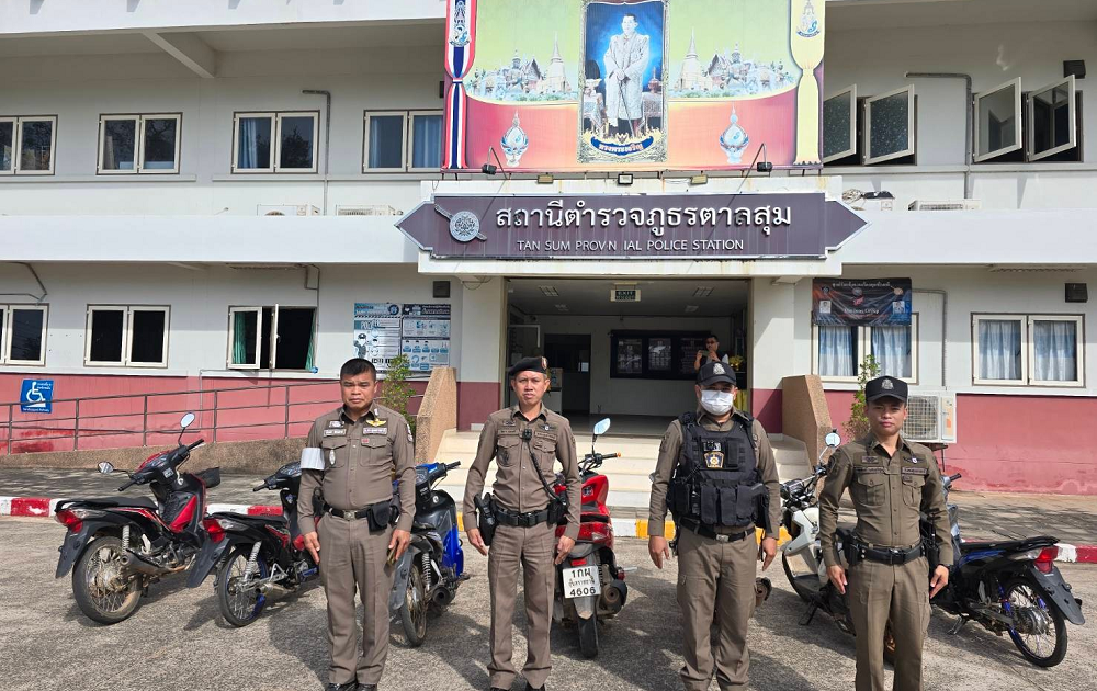 1.ฮอนด้า รุ่น เวฟ i สี ดำ-แดง ไม่ติดแผ่นป้ายทะเบียน 2. ฮอนด้า รุ่น เวฟ i สีดำ -แดงไม่ติดแผ่นป้ายทะเบียน 3. ฮอนด้า รุ่น เวฟ i สีดำ -น้ำเงิน ไม่ติดแผ่นป้ายทะเบียน 4. ฮอนด้า รุ่น PCX สีดำ -แดงแผ่นป้ายทะเบียน 1กผ 4606 อุบลราชธานี 5. ฮอนด้า รุ่น ยามาฮ้า ฟิน สีเทา -ดำแผ่นป้ายทะเบียน 1 กล 3472 อุบลราชธานี 6. ฮอนด้า รุ่น ซูมเมอร์x สีขาว แผ่นป้ายทะเบียน 1กฐ 3403 อุบลราชธานี 7. ฮอนด้า รุ่น เวฟ i สีดำ –น้ำเงินไม่ติดแผ่นป้ายทะเบียน ข้อหา –ไม่มีสำเนาคู่มือจดทะเบียนรถ -อุปกรณ์ส่วนควบไม่ครบถ้วน -ดัดแปลงสภาพท่อไอเสีย -สถานที่ตรวจยึด ริมป่าข้างถนนข้างโรงเรียนตาลสุม ต.ตาลสุม อ.ตาลสุม จ.อุบลฯ -ดำเนินการบันทึกตรวจรถจักรยานยนต์ -ได้บันทึกจัดทำประวัติแล้ว